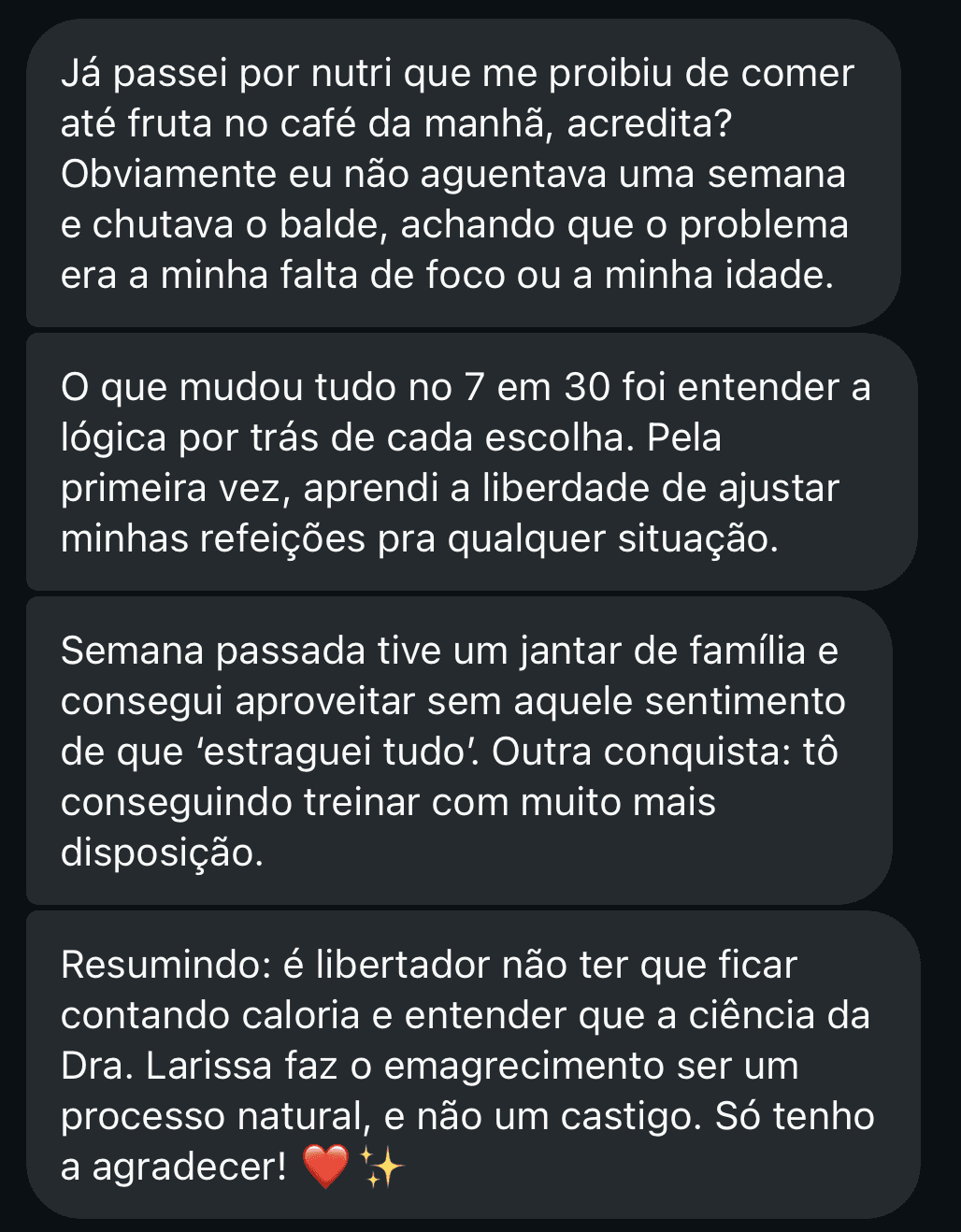 O 7 em 30 descomplica a ciência e trata o organismo como um sistema que precisa de suporte, não de regras rígidas. Larissa acredita que a mudança definitiva acontece sem extremos e sem sofrimento. Especialista em saúde hormonal e longevidade, ela garante que você tenha acesso aos avanços mais confiáveis da ciência mundial para viver a sua melhor versão hoje.
